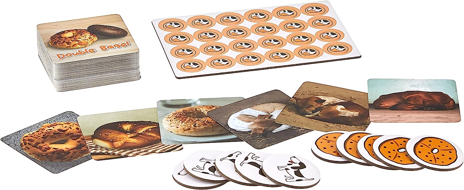 - In Beagle or Bagel, you're presented with cards that have either baked bagels or curled-up pooches on them. You must be the first to determine which group has more representatives shown and shout out your answer.