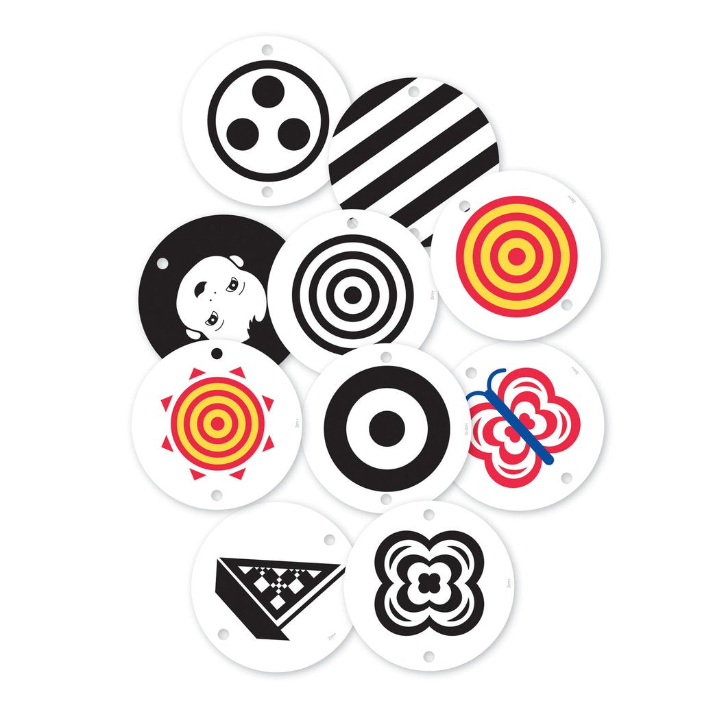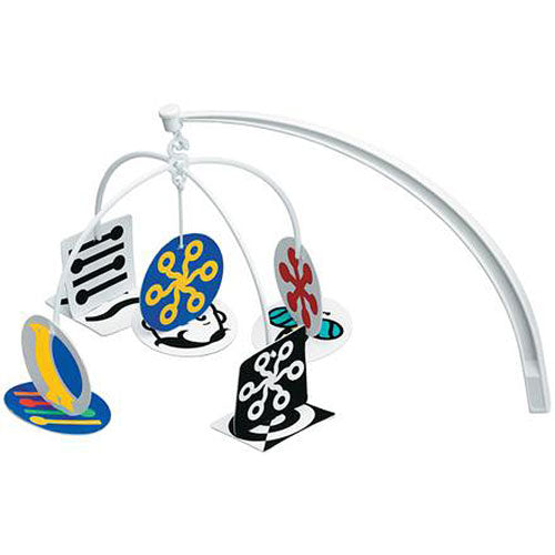 This award-winning mobile features vivid color and bold black-and-white images. Simple-to-complex images stimulate early visual activity and pre-reaching movement.
