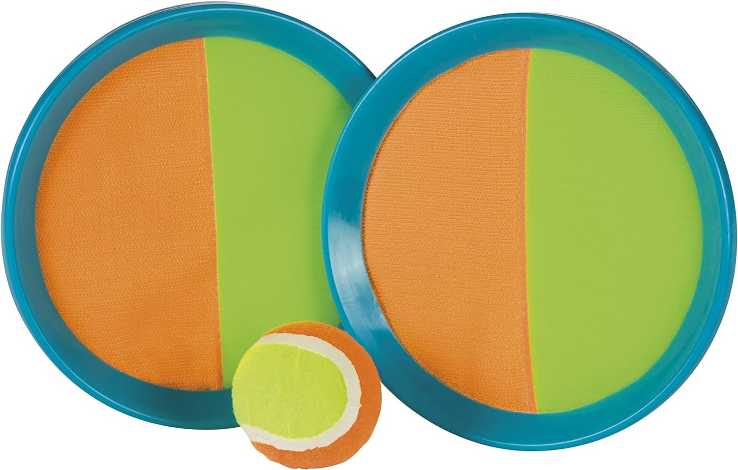 Easy to play and in eye-catching colors, this hook and look catch set includes two 7.5" neon paddles and one 2" ball. 5yr+