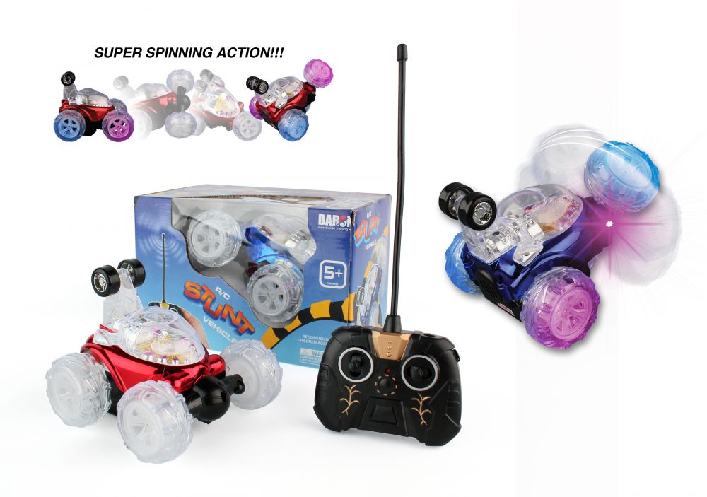 Remote Control Stunt Vehicle. Assorted colors, Red or Blue. Comes with 5 sounds and mute. Does flips and stunts. Instructions for advanced moves on the packaging. item is 4.5 inches high 5 inches wide and 5 1/4 inches long frequency is 27 MHz