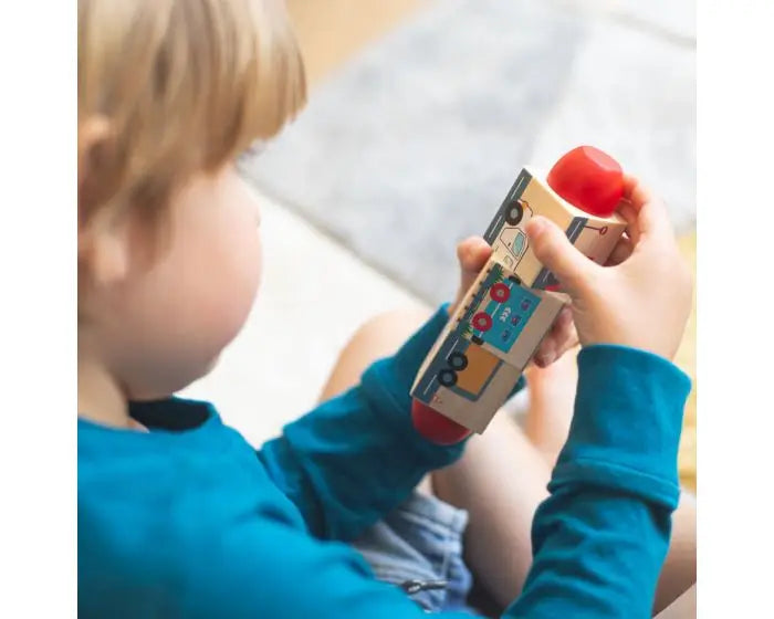 Creative kids will love twisting and turning our Vehicle Twist Blocks wooden puzzle. Twist the blocks to match the front, middle and ends of each vehicle. Ideal for developing problem-solving and fine motor skills as little hands turn the blocks. Match the correct images, or mix them up to create some crazy cars. With over 60 combinations to make, the fun with this kids puzzle never stops. The perfect stocking stuffer for your toddler.